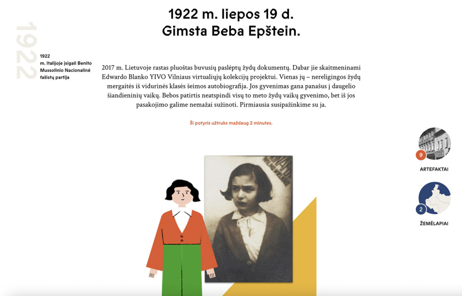(New York, NY) – The YIVO Institute for Jewish Research launched a Lithuanian translation of its award-winning Bruce and Francesca Cernia Slovin Online Museum’s inaugural exhibition, Beba Epstein: The Extraordinary Life of an Ordinary Girl.