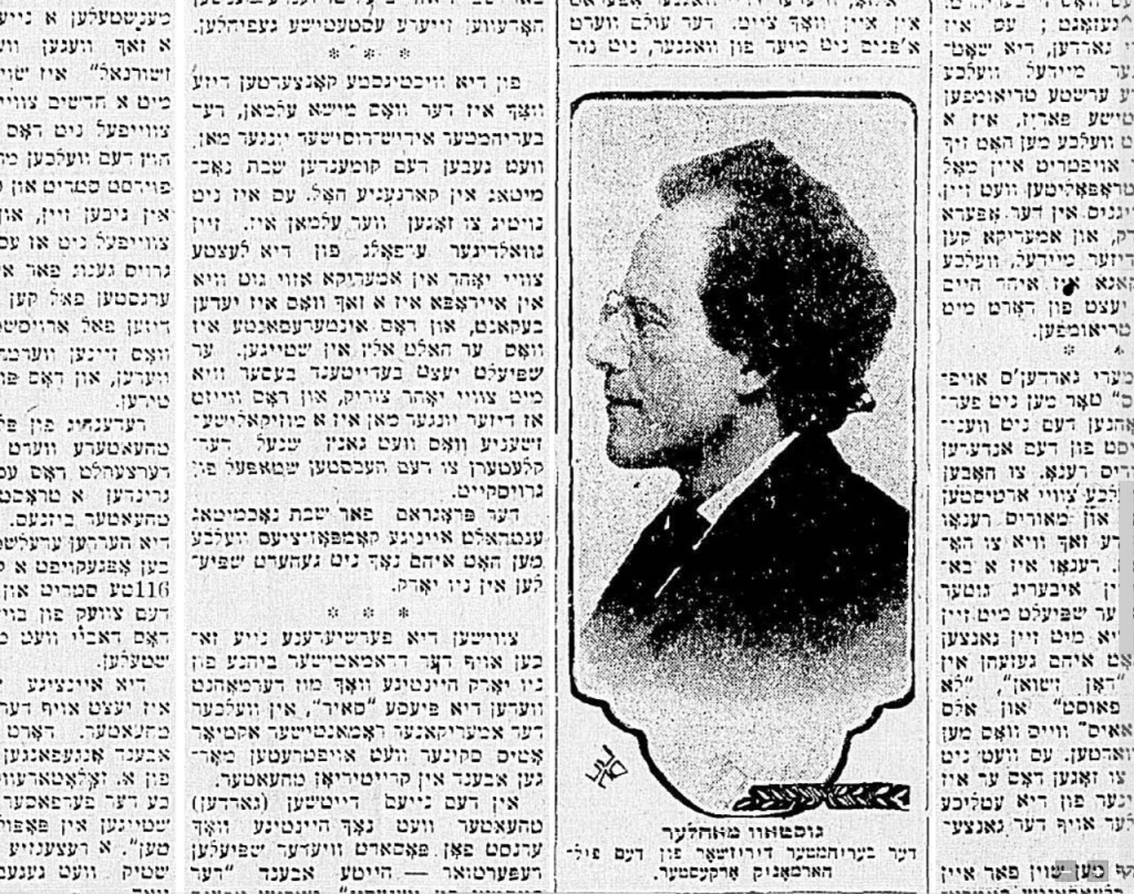 By this definition it’s a bit of a stretch to consider the music of composer Gustav Mahler Jewish. His music engages with a cultural tradition that is primarily German and the language of the texts of his songs is almost always German. Although many hear the influence of Jewish folk music, as in the third movements of his first and second symphonies (which I’m convinced were used as models for Fiddler on the Roof, but that’s another story), it’s difficult to argue that Jewish folk music was central for Mahler’s musical project. It certainly wasn’t in the way it was for his younger contemporaries in the East, such as Joseph Engel and Lazare Saminsky, who sought to use Jewish folk and liturgical music to create an explicitly Jewish style of Classical music.