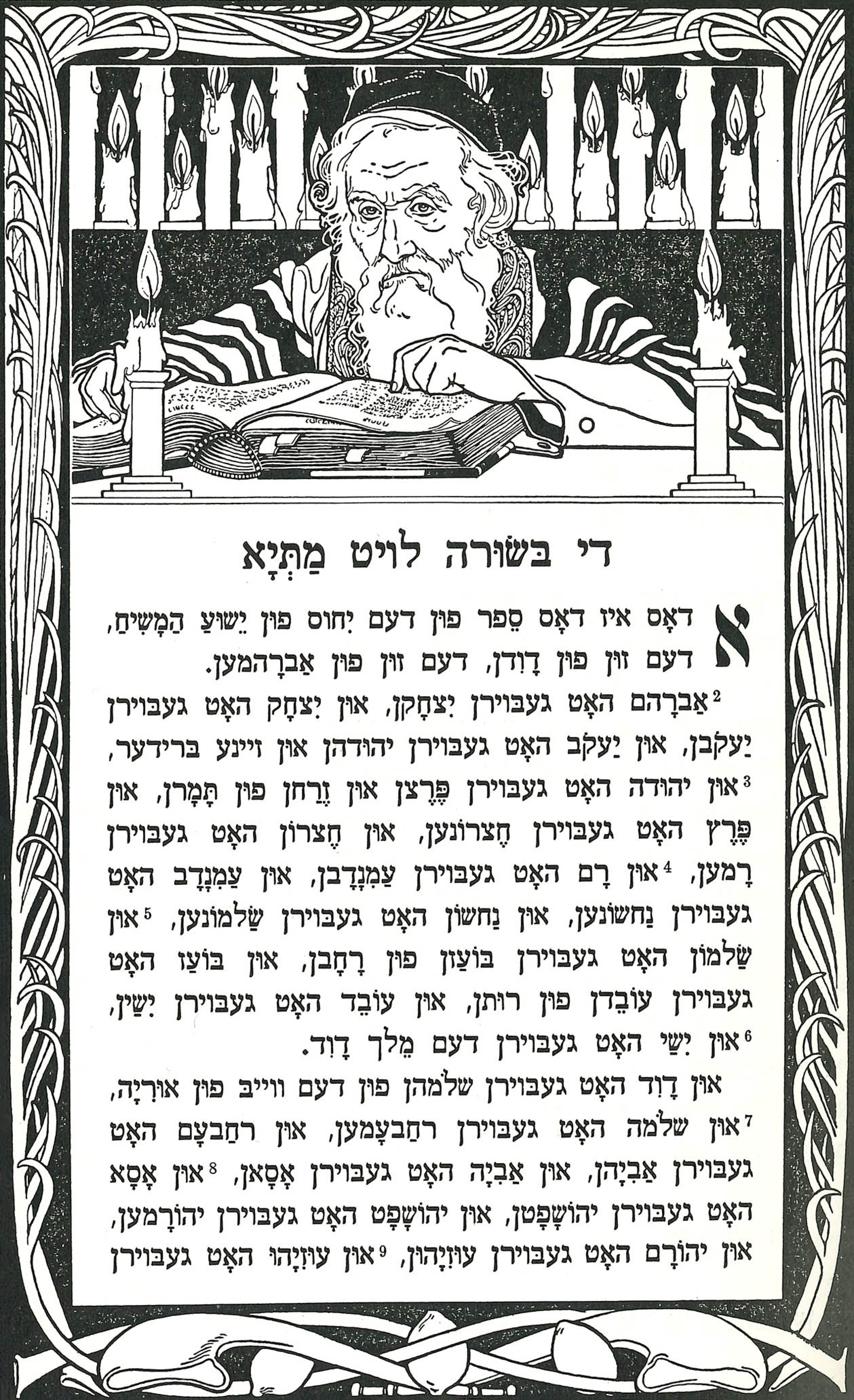 It is a curious fact that among the first Yiddish books ever printed was a translation of the New Testament, which appeared in 1540, only 18 years after Luther's famous translation (which it shamelessly cribbed). In the centuries that followed, another dozen or so missionary translations directed to Yiddish-speaking Jews followed. This talk will explore a dramatic change in the character of these translations in the twentieth century, when new conceptions of the Yiddish language, new cosmopolitanism in Yiddish culture, and new understandings of Jewish-Christian conversion converged to create new translation styles that aimed to express Jesus's Jewishness through a rich and haymish Yiddish.