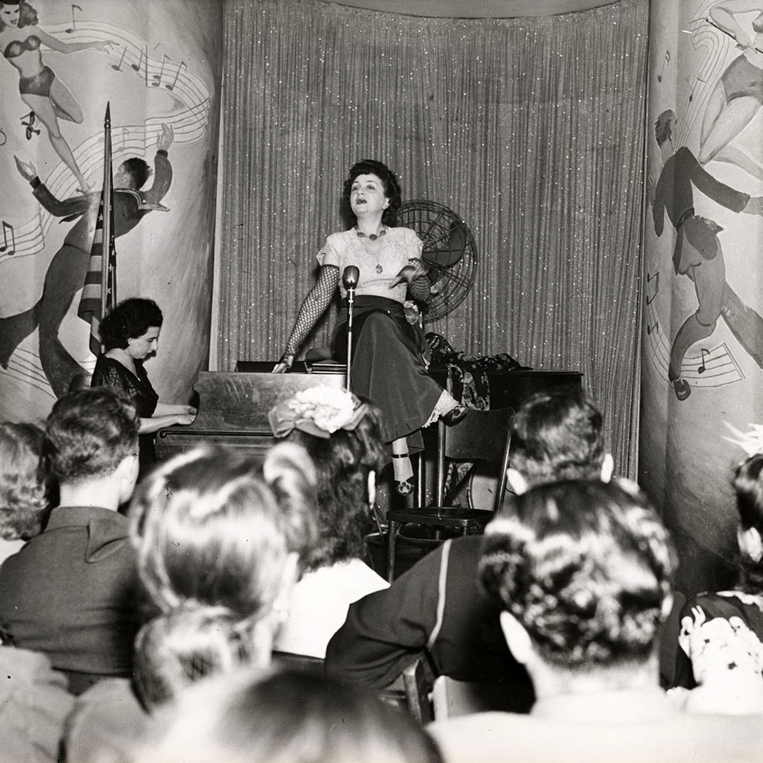 Molly Picon performing during a USO tour, 1944. YIVO Archives.