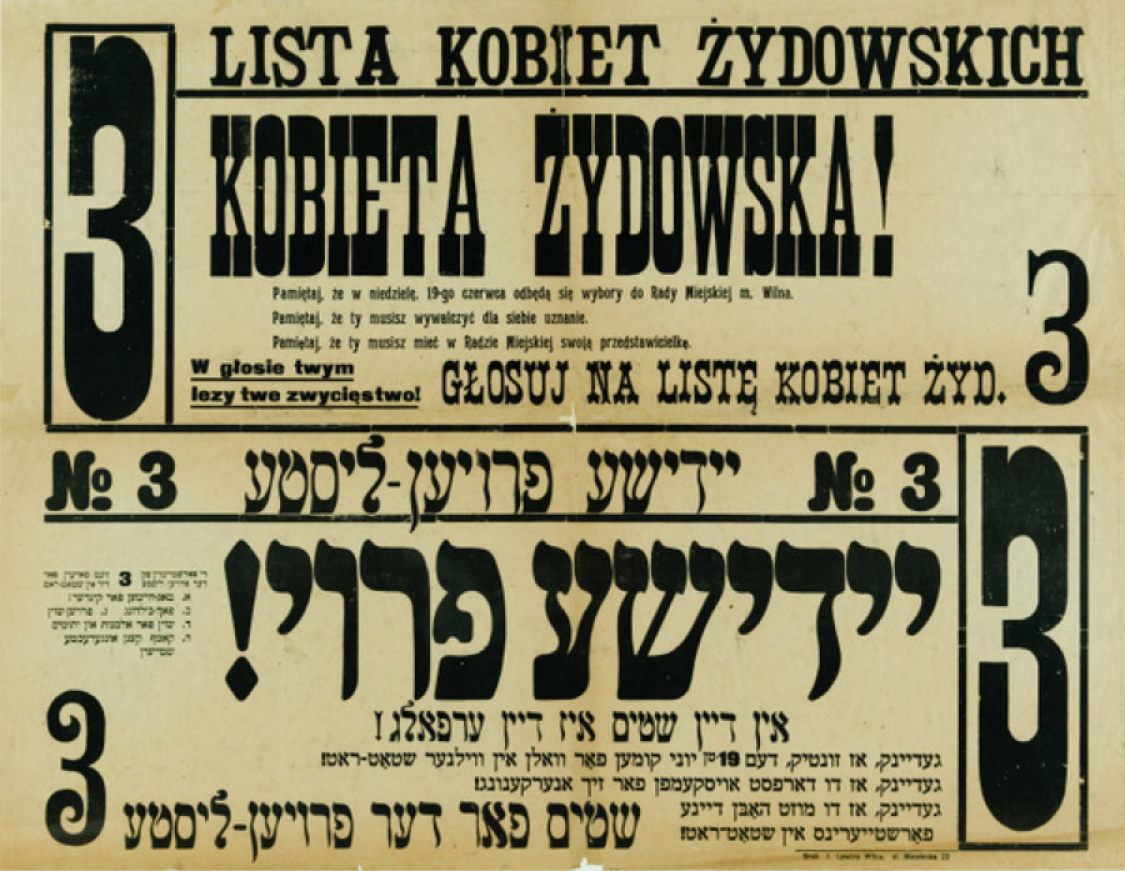Vilna. Appeal to Jewish women to vote for ballot #30 [Jewish Women's List], c. 1920s. YIVO Archives.