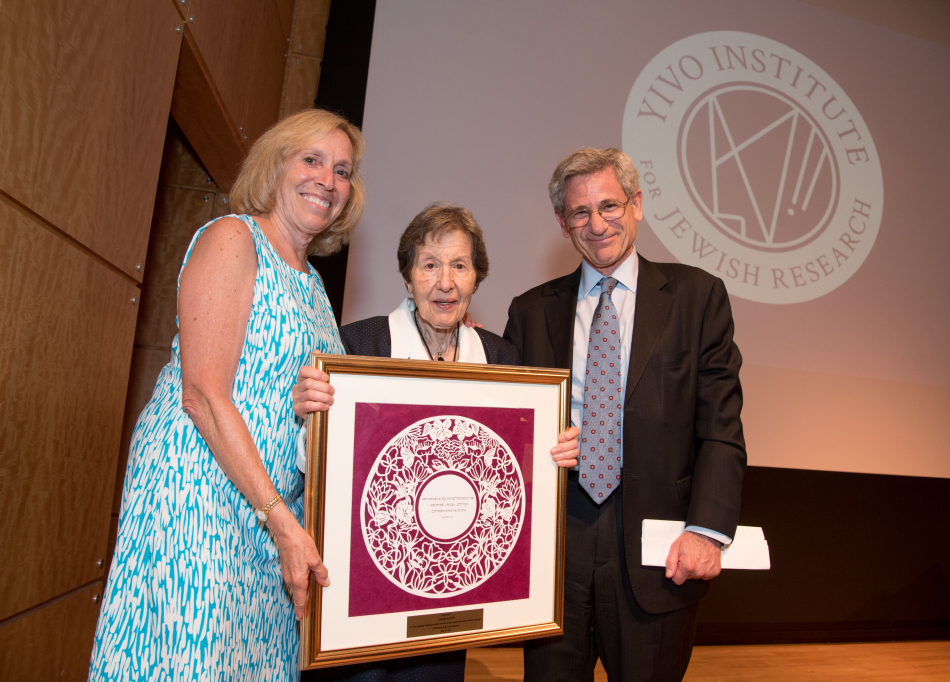 Chava (Petruska) Lapin’s life-long commitment to the Yiddish language, as teacher, scholar, and YIVO board member for over four decades, has and continues to inspire generations. Chava was born in Montreal and grew up in a Yiddish-speaking home. She studied at McGill University, where she completed both her undergraduate and doctorate degrees in biochemistry, and moved to New York City in 1957, where she completed a post-doctorate at Albert Einstein College of Medicine. She conducted neurochemistry research at Mount Sinai School of Medicine, publishing over 50 academic papers. Chava began teaching Yiddish at Queens College and Columbia University in the fall of 1973, and in YIVO’s summer program in 1974. For over a decade she also served as Director of Culture and Education for the national Workmen’s Circle. Her husband, Shmuel Lapin, served as YIVO’s Executive Director from 1966 to 1973. She continues to serve on the YIVO Board of Directors, to teach Yiddish in YIVO’s summer program and elsewhere, and to consult on various Yiddish academic projects, including the recent publication of The Comprehensive English-Yiddish Dictionary.