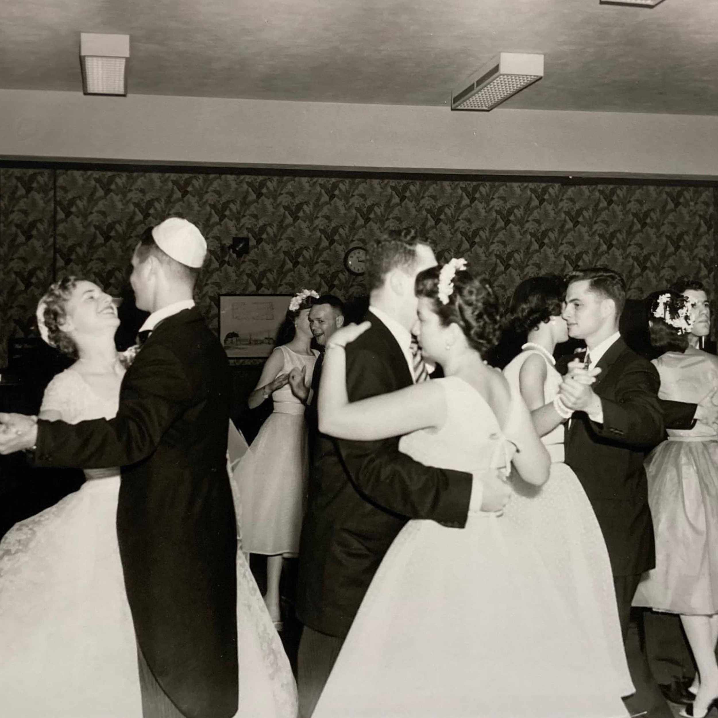 If you attended a typical American Jewish wedding in the 1950s, you might have noticed some departures from tradition, such as a photographer buzzing around the rabbi, a floral wedding canopy, or “kosher style” catering. The modern formula varied from one wedding to another, but one thing was certain: if it was a Jewish wedding, you danced a hora. Even as Jews became increasingly Americanized and abandoned older practices, they held on to Jewish dances and dance music as an easy and accessible way of articulating their Jewish identity at a public event, in front of their family and friends. Jewish music and dance underwent significant changes during the postwar period, absorbing strong influences from American popular music and Israeli folk songs. Nonetheless, dances like the hora, freylekh, and sher remained “Yiddish to the core.” For many American Jews, these dances became a symbol of cultural continuity, and one of the important elements that defined their wedding as Jewish.