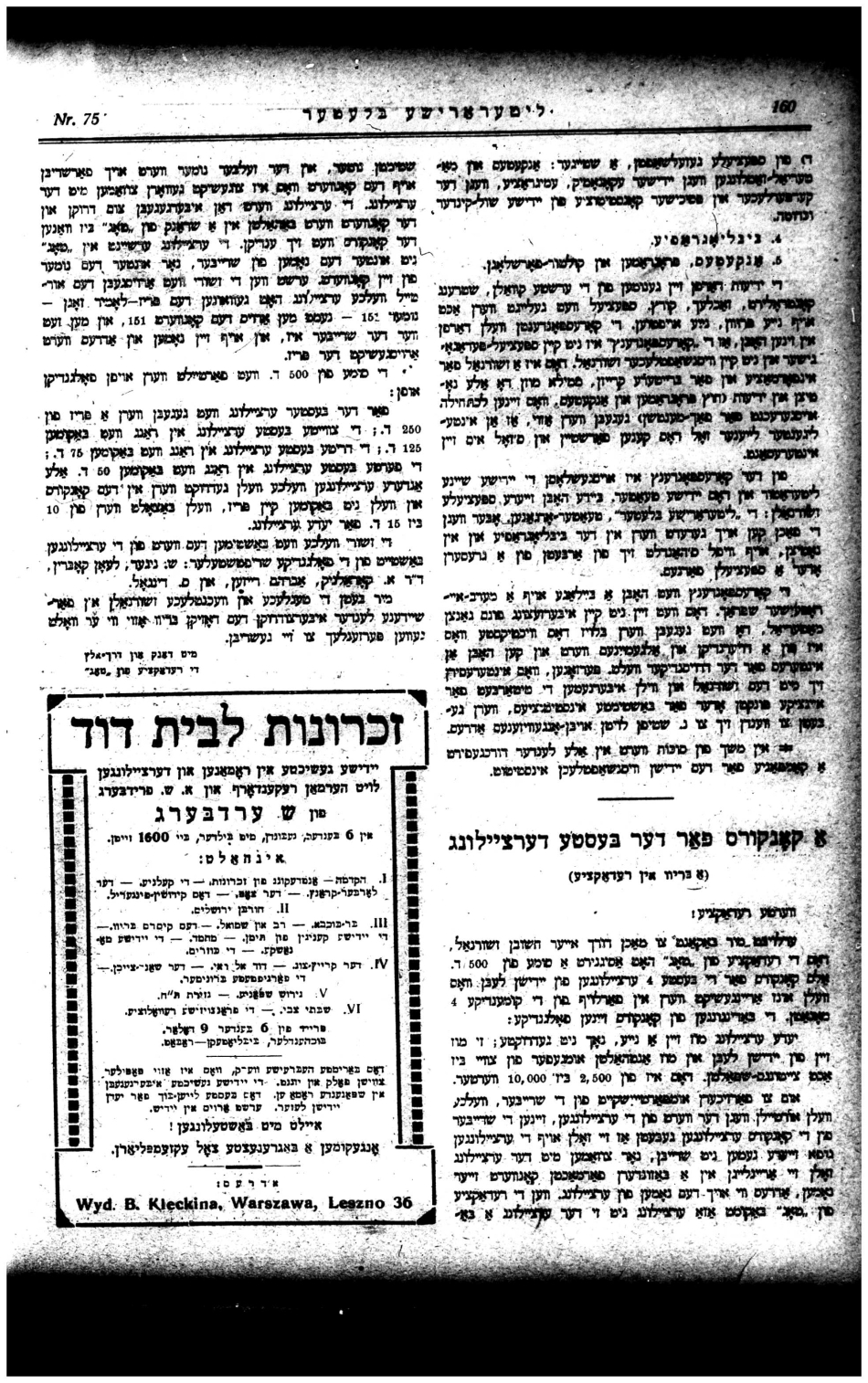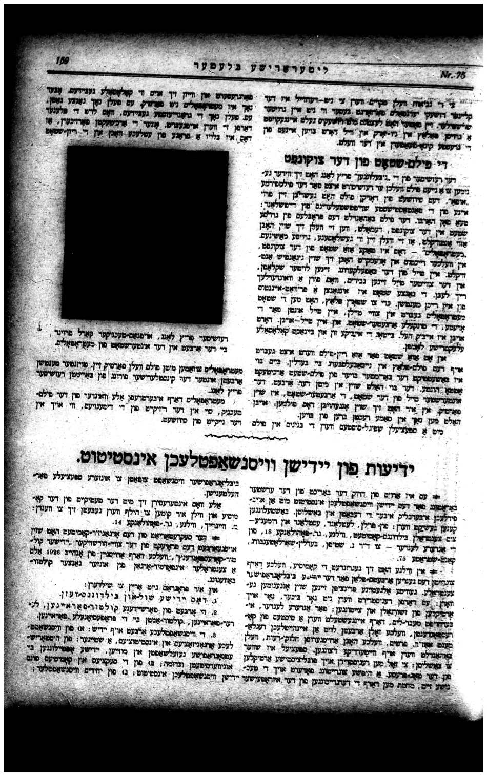This first edition of the Yedies concludes with the announcement that YIVO was planning to kick off an international fundraising campaign over the upcoming Jewish holiday of Sukes (Sukkoth).
