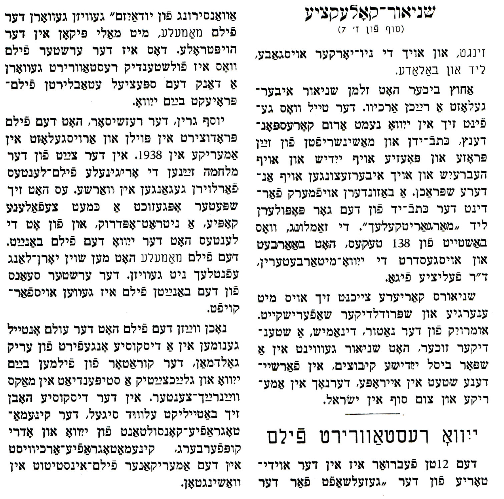Among the speakers at the 1978 screening were Eric Goldman, then YIVOs’ film curator, as well as a fellow of the Max Weinreich Center, film consultant and Audrey Kupferberg, film archivist at the American Film Institute.
