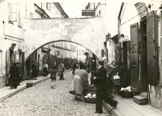 Peddlers under the arch on Jatkowa Street in the Jewish Quarter,